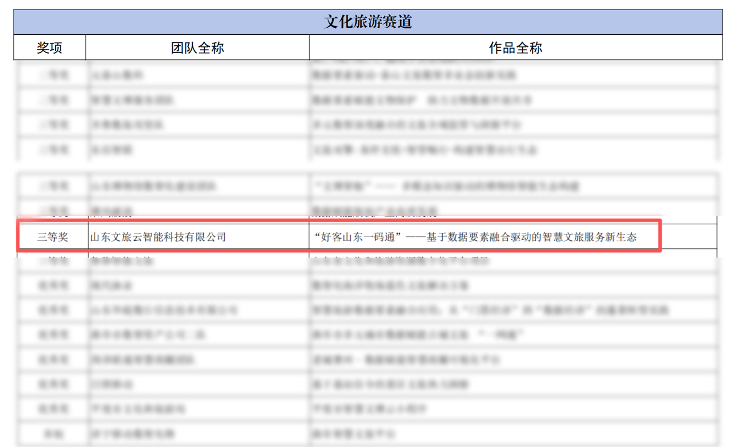 近日,2025年“數(shù)據(jù)要素×”大賽山東分賽決賽在濟南成功舉辦。山東文旅云智能科技有限公司參賽團隊憑借作品《好客山東一碼通——基于數(shù)據(jù)要素融合驅(qū)動的智慧文旅服務(wù)新生態(tài)》,榮獲文化旅游賽道三等獎。