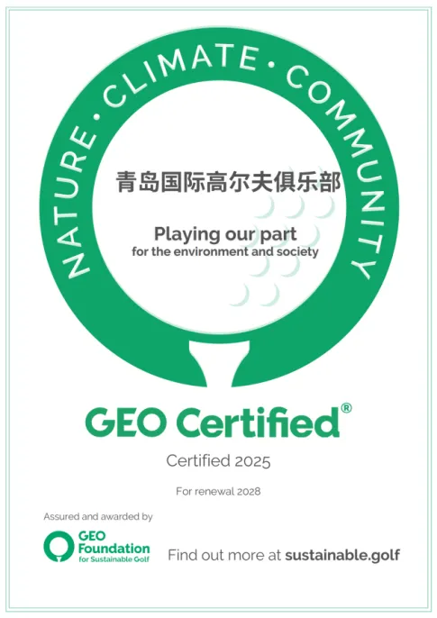 近日,青島高爾夫公司正式獲得歐盟頒發(fā)的Golf Environment Organization可持續(xù)發(fā)展認證(GEO國際環(huán)境組織認證),成為山東省首家獲此認證的高爾夫球場,同時也是國內(nèi)為數(shù)不多的十幾家GEO認證球場之一。這一認證不僅標志著青島高爾夫公司在環(huán)境保護、資源節(jié)約與生態(tài)運營方面的實踐與世界標準接軌,更展現(xiàn)了公司將生態(tài)文明理念系統(tǒng)融入日常經(jīng)營、積極踐行集團“生態(tài)化”戰(zhàn)略的堅定承諾。