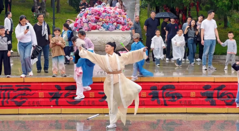 在空間改造方面,景區(qū)采取“微改造、精提升”策略,對山門至過山車站點的功能通道進(jìn)行文化重塑,打造為“百福路”文化體驗廊道。通過鋪設(shè)百福地刻、設(shè)置互動裝置中國大鼓、心愿墻及投壺、木射等傳統(tǒng)游戲體驗區(qū),并配合定時非遺巡游表演,將通行空間成功轉(zhuǎn)型為文化展示與互動場域,增強(qiáng)游客行進(jìn)過程中的文化感知。