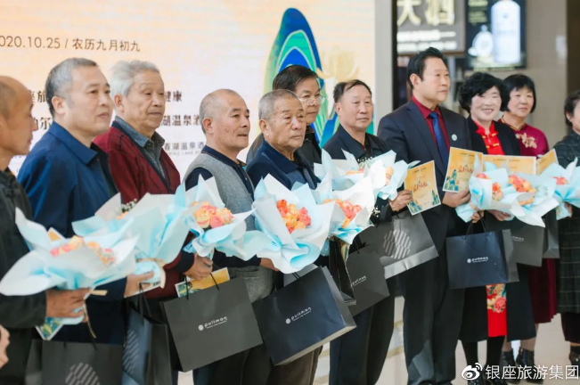 管理層為在場叔叔阿姨頒發(fā)“最美夕陽紅”證書和花束,并留下了幸福的合影。