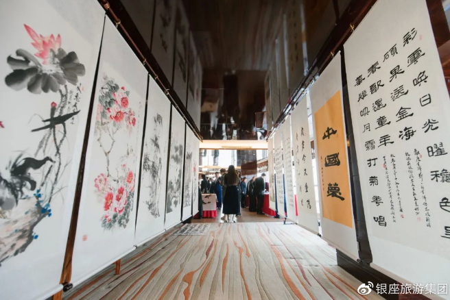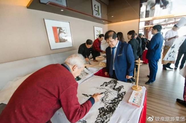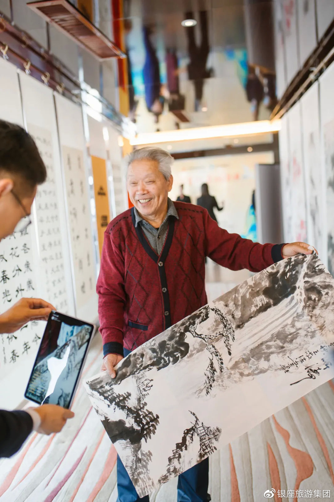 書畫現(xiàn)場人頭攢動(dòng),藝術(shù)的氣息充滿了整個(gè)酒廊,筆法蒼勁有力,筆尖生花巧奪天工,每個(gè)書法展示臺(tái)都圍滿了人群,求字求畫的人絡(luò)繹不絕,感嘆叔叔阿姨們,雖已經(jīng)離開工作崗位,但對(duì)美好生活的向往和追求讓他們充滿了青春與活力,這種積極奮進(jìn)不斷學(xué)習(xí)的精神,值得學(xué)習(xí)。