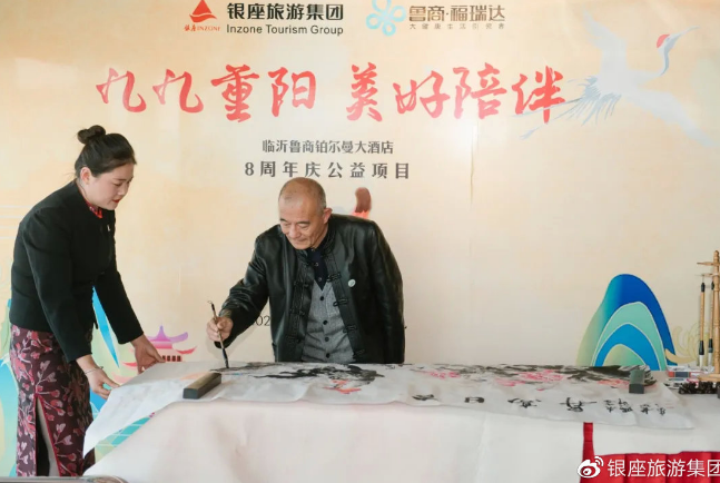 本次活動(dòng)特邀兩位藝術(shù)家現(xiàn)場書寫畫作,為活動(dòng)助興,還有古箏合奏,博得現(xiàn)場陣陣掌聲,一曲《九九艷陽天》帶來了新時(shí)代夕陽紅的精氣神,歌聲婉轉(zhuǎn)動(dòng)聽,現(xiàn)場臺(tái)風(fēng)穩(wěn)健,令人倍感驚艷。