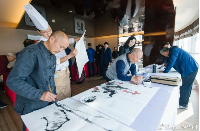 除了有書畫家的藝術(shù)作品,酒店的大廚們也不甘落后,把美食做出了藝術(shù)。栩栩如生的柿子、以蘿卜和土豆為主題的特制面點(diǎn)足以以假亂真,還有為本次活動(dòng)特制的玫瑰花面食、養(yǎng)生湯品,讓藝術(shù)家門贊不絕口,紛紛豎起大拇指。