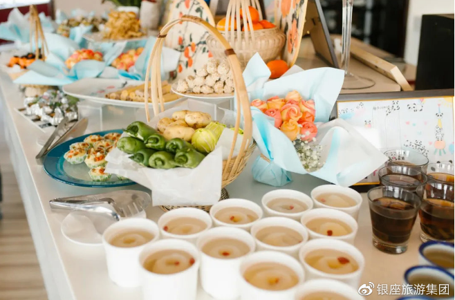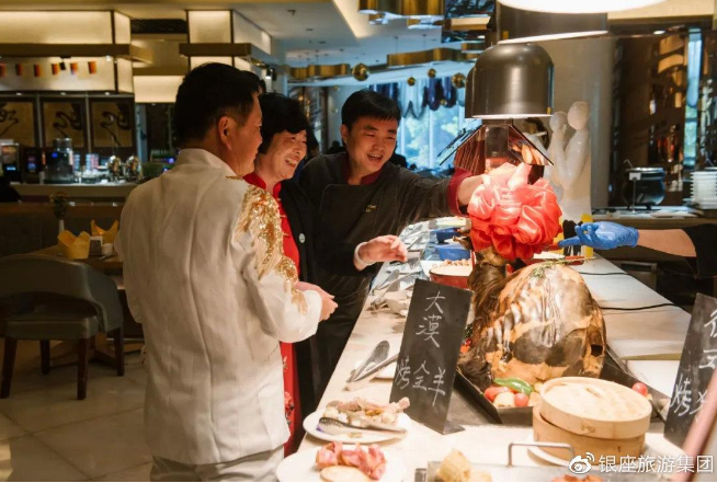 在一樓自助餐廳,特制重陽節(jié)蛋糕為老人送去生活里的甜蜜;酒店管理層將帶有美好寓意的五彩水餃端送給叔叔阿姨、創(chuàng)意手工煎餅也很是吸睛。“羊”與“陽”諧音,吃羊肉可暖中補(bǔ)虛,益氣、開胃健脾等功效,重陽節(jié)“開羊”儀式自然必不可少,祝福這些為我們帶來滿滿正能量的活力夕陽紅身體康健!飽含心意的安排,讓叔叔阿姨們備感銀座旅游集團(tuán)與魯商福瑞達(dá)健康對(duì)本次活動(dòng)的用心。