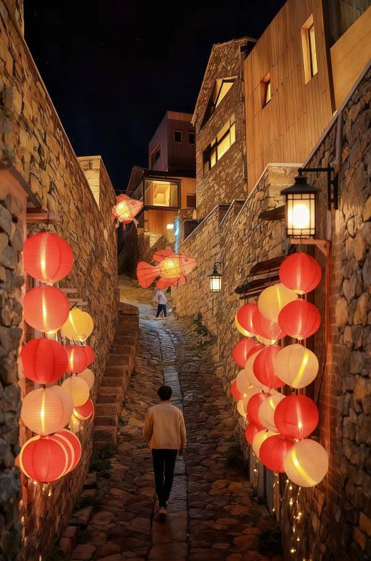 活動內(nèi)容豐富多彩,涵蓋提燈游園、萌寵互動、非遺體驗與復(fù)古影像等多個環(huán)節(jié)。游客可攜愛寵一同參與“月宮換裝”,佩戴專屬官牌化身“月宮巡使”,在古槐樹下C位“拜月”,萌趣十足;現(xiàn)場設(shè)置爪印簽名墻,留下專屬祝福,儀式感滿滿。專為寵物定制的健康月餅讓“汪星人”也能共享節(jié)日滋味,社交盲盒環(huán)節(jié)更可隨機結(jié)識“寵友”,完成打卡任務(wù)即可領(lǐng)取限量版“月宮零食禮包”。游園途中,非遺魚燈、古墻花燈與手作燈籠交相輝映,飲馬泉畔、月下老槐等打卡點隨手一拍即成國風(fēng)大片。此外,現(xiàn)場還配備了多臺富士一次性膠片機,捕捉游客與寵物的溫馨瞬間,沖洗后以“慢遞”形式發(fā)送至郵箱,用延遲驚喜傳遞復(fù)古浪漫。值得一提的是,入住山鄉(xiāng)東泉民宿的游客可以免費參與活動。