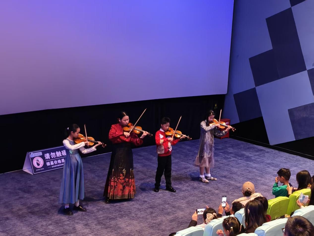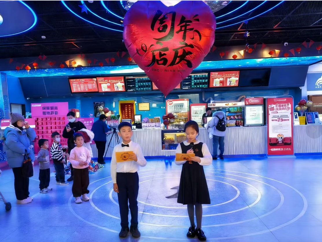 店慶當天,影城化身歡樂舞臺,4名小朋友以一曲小提琴齊奏拉開了活動序幕,悠揚琴聲與純真笑容感染全場,觀眾紛紛駐足拍照。隨后開啟的“抓零食大挑戰(zhàn)”將氣氛推向高潮,現(xiàn)場笑聲與歡呼聲此起彼伏,不少家庭組隊參與,親子互動溫馨有愛。此外,影城特別推出了一系列優(yōu)惠活動,其中包括觀影折扣、定制周邊以及抽獎福利,讓每一位到場的影迷都能有所收獲。