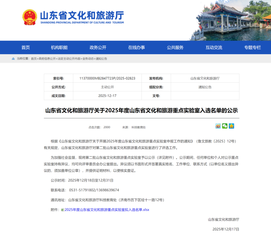近日,山東省文化和旅游廳正式發(fā)布《山東省文化和旅游廳關(guān)于2025年度山東省文化和旅游重點(diǎn)實(shí)驗(yàn)室入選名單的公示》,由山東文旅集團(tuán)作為依托單位,聯(lián)合文旅云公司、山東大學(xué)共建的“AI雙循環(huán)驅(qū)動(dòng)文化基因解碼利用創(chuàng)新”山東省文化和旅游重點(diǎn)實(shí)驗(yàn)室成功入選!此前,文旅云公司已獲文旅大數(shù)據(jù)創(chuàng)新應(yīng)用實(shí)驗(yàn)室等3個(gè)省級(jí)重點(diǎn)實(shí)驗(yàn)室,此實(shí)驗(yàn)室是公司的第4個(gè)省級(jí)創(chuàng)新平臺(tái),科創(chuàng)實(shí)力再攀新高,標(biāo)志著公司在文旅科技融合領(lǐng)域的布局日趨完善。