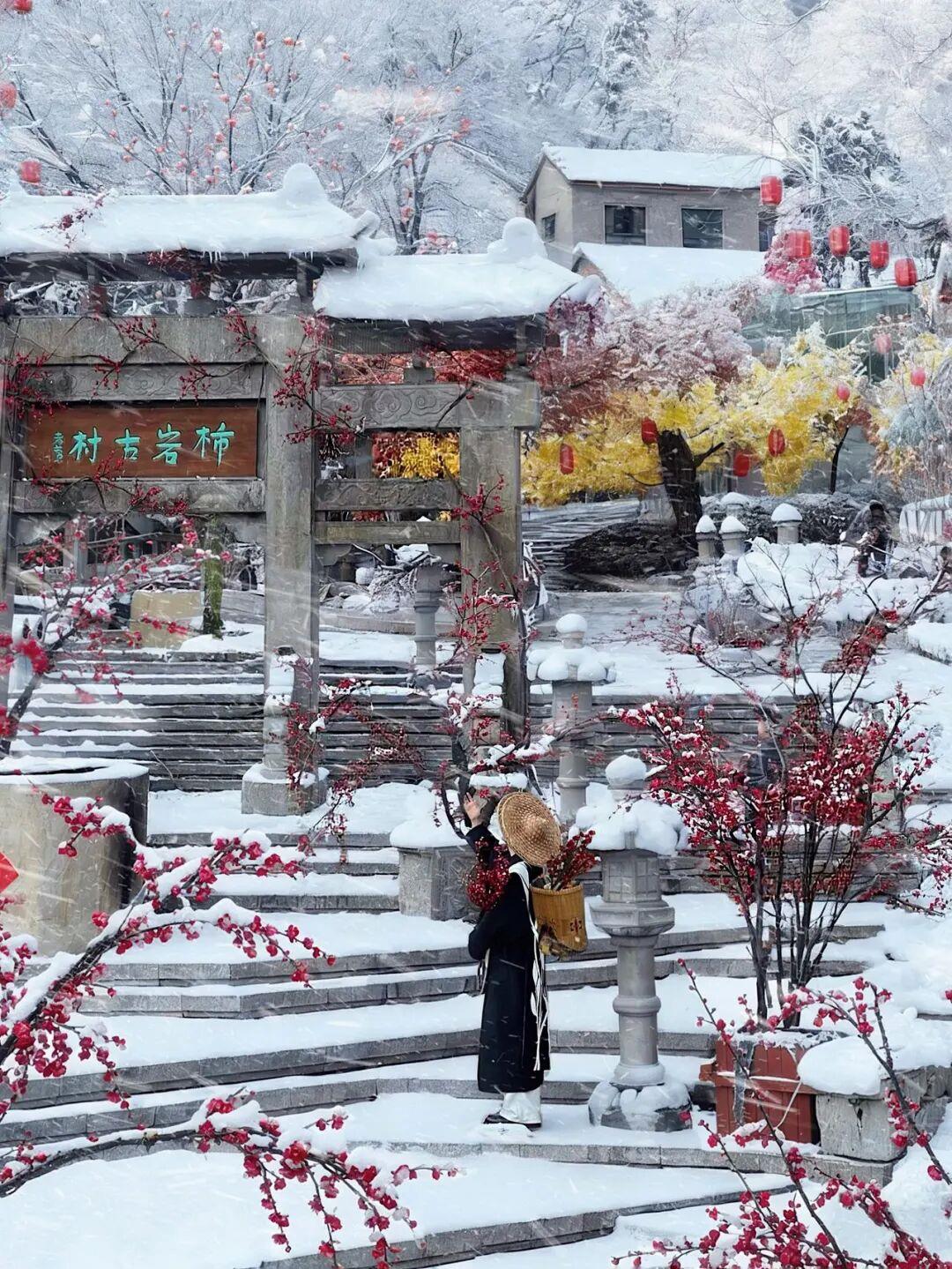 這個(gè)冬天,我們誠(chéng)邀全國(guó)游客親臨現(xiàn)場(chǎng),在“踏雪·尋梅記”的冬日盛景中,感受這份創(chuàng)新活力。雪覆古村,梅映柿巖,一幅冬日的詩(shī)意畫卷正為您展開。您可漫步于紅墻雪亭之間,觀賞三十余種非遺雜藝;也可吃逛煙火柿巖村,品嘗一元暖心的冬日小食,與穿越古今的NPC不期而遇。紅葉柿巖以雪為幕,以梅為引,帶您觀賞兼具文化深度與生活溫度的中式美學(xué),體驗(yàn)一場(chǎng)穿越千年、溫暖人心的冬日浪漫。