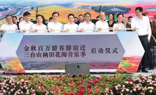近日,在三臺山國家森林公園,江蘇宿遷市舉行“金秋百萬游客游宿遷”暨三臺山“衲田花海音樂季”啟動儀式,振興鄉(xiāng)村,宿遷打出了花海牌。。江蘇省文化和旅游廳二級巡視員張農(nóng),江蘇省旅游協(xié)會副會長唐建國,中國康輝旅游集團副總裁高鎖山,江蘇宿遷市委書記、市人大常委會主任張愛軍,市委副書記、市長王昊出席啟動儀式。
