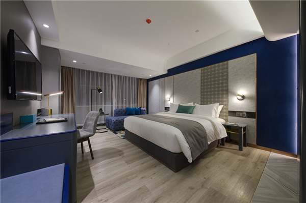 蘭歐酒店傾力于文化的經(jīng)營,創(chuàng)造新的經(jīng)營模式,如IP合作授權(quán)、藝術(shù)中心、主題IP客房、IP文創(chuàng)衍生品等。讓酒店不再是單純的住宿空間,而是可以承載文創(chuàng)、社交、商務、藝術(shù)聚合的多維空間。在酒店的整體造型上,采用現(xiàn)代設計元素,天然大理石紋理連接深色地毯,藍、灰、白三色營造的立體空間讓人行走舒適,視覺感受豐富。酒店大堂空間也一改過往的單調(diào)空洞,而是一個集藝術(shù)、時尚、閱讀、辦公、多元化交流、互動及展示的空間,讓每位入住的旅客可以跨越歷史,徜徉在文化與藝術(shù)的海洋,聆聽文化心聲,感觸藝術(shù)氣息,在藝術(shù)中感悟住宿之愜意以及生活之美好。