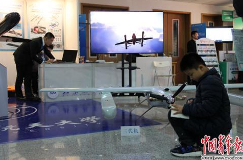 小觀眾認(rèn)真觀摩無(wú)人機(jī)作品,并作記錄。陳鳳莉/攝