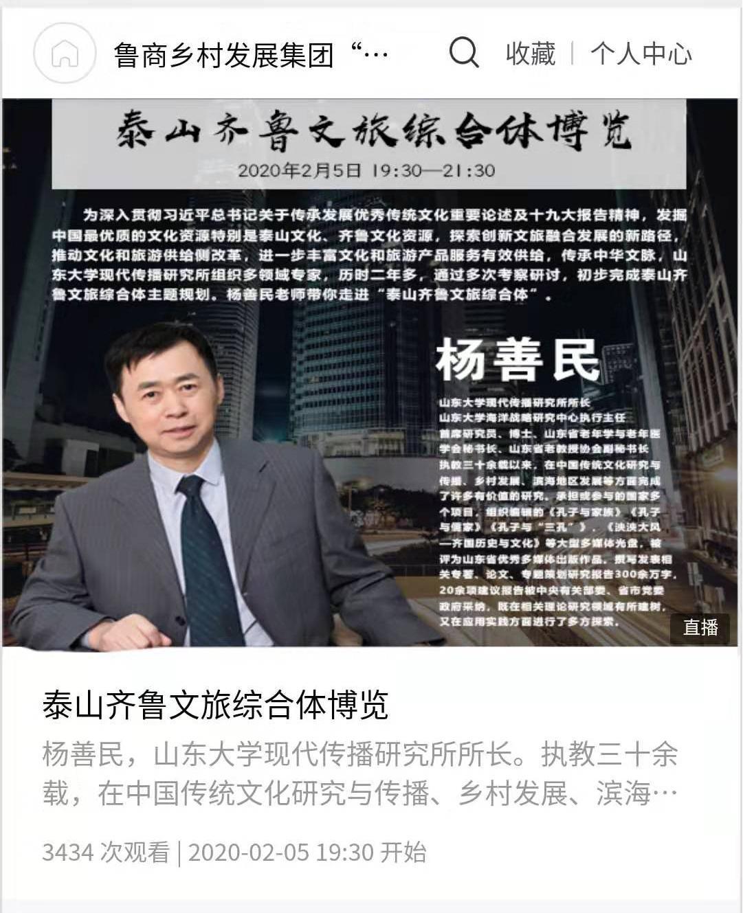 整場直播,楊善民從泰山齊魯文旅綜合體的定位和目標、八大主題城、打造齊魯文旅“雙創(chuàng)”高地三個方面,娓娓道來,細細講解,為學員們呈現(xiàn)了一場兼具深度、氣度和維度的文化盛宴。