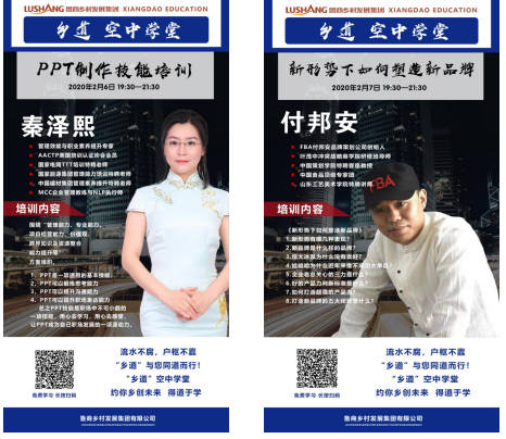 “鄉(xiāng)道”空中學堂首次開課共涉及三個方面內容,2月6日和7日還陸續(xù)推出《實用有效的PPT設計與制作課程》《新形勢下如何塑造新品牌》等課程,授課內容直指日常工作和企業(yè)發(fā)展的熱點、痛點和焦點,值得期待。