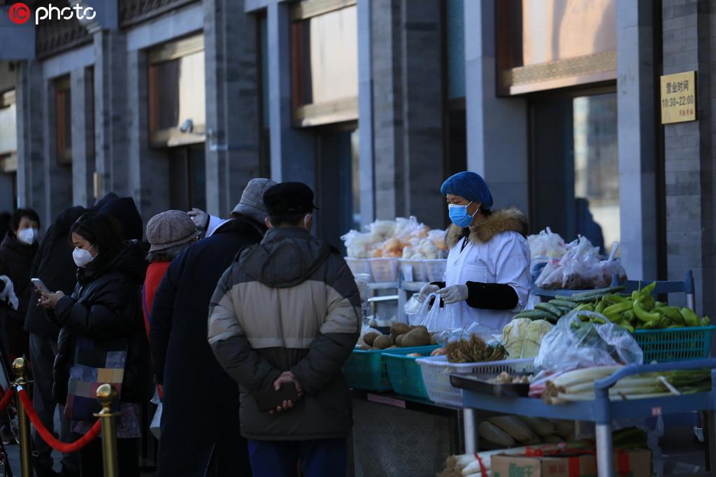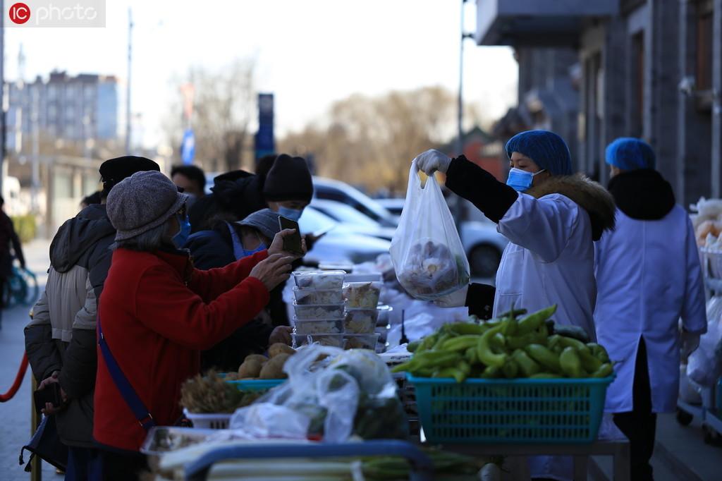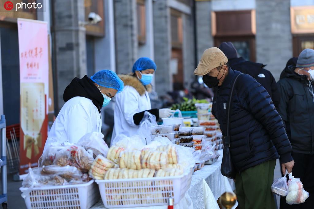 2020年3月4日,為避免堂食人員聚集,北京眾多老字號餐廳“轉(zhuǎn)戰(zhàn)”室外,將菜品搬到門口“擺攤”銷售。在西城區(qū)馬凱餐廳地安門店門前看到,外賣柜臺各類商品齊全。其中包括新鮮蔬菜、主食、腌肉、半成品蔬菜和打包飯菜。門外還設(shè)置排隊(duì)區(qū),附近居民佩戴口罩,有序排隊(duì)購買。據(jù)悉,主食、平價菜和燒雞等特色菜頗受居民喜愛。僅室外售賣區(qū)銷售額每天就有2、3萬元。閔文俊/IC photo