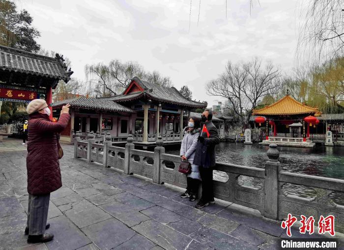 資料圖:圖為趵突泉景區(qū)恢復(fù)迎客后,游客在三股泉附近拍照留念。 趙曉 攝