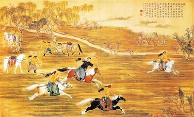 北京豐臺南苑地區(qū)曾經(jīng)水系發(fā)達(dá)、草木豐美,具有“野趣”歷史生態(tài)風(fēng)貌特征。圖為清代《乾隆皇帝射獵圖》描繪的南苑地區(qū)畫面。