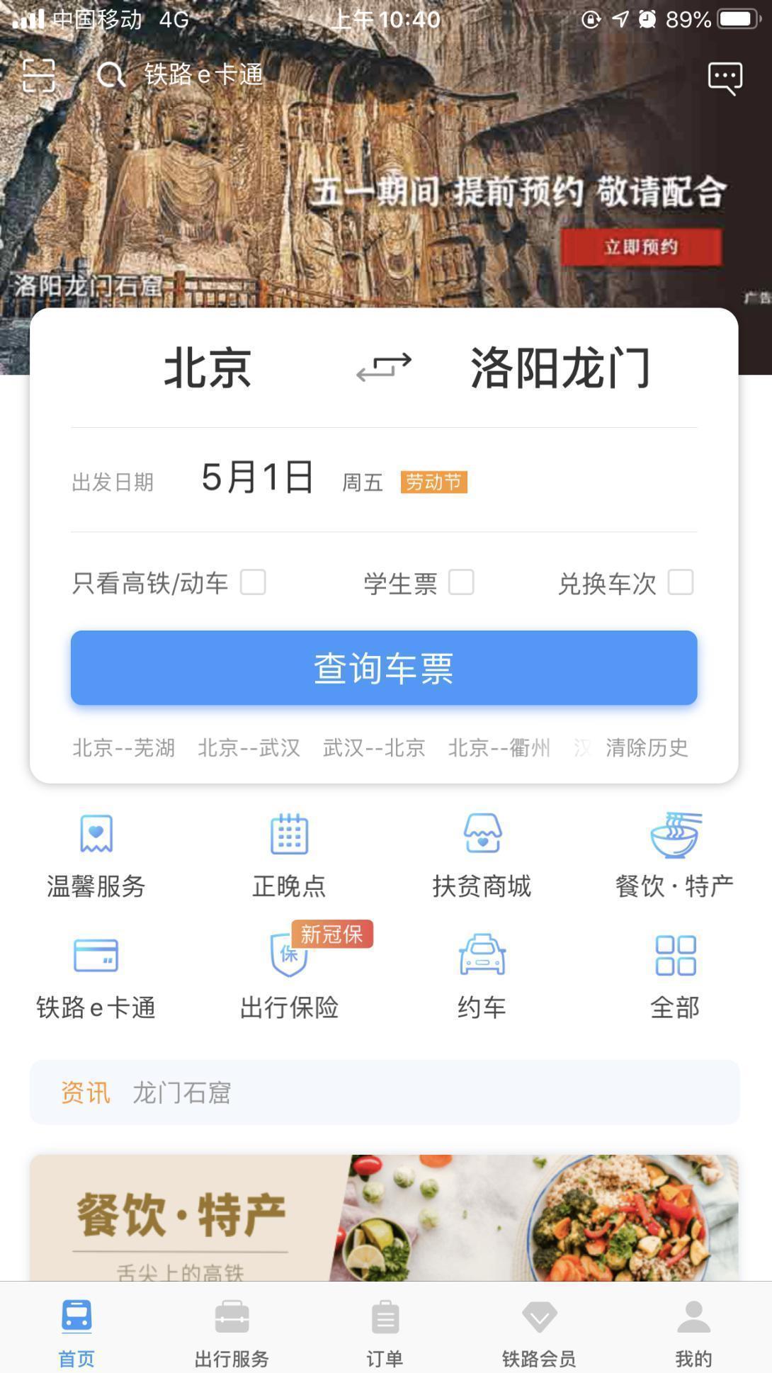 以洛陽龍門石窟景區(qū)為例,用戶在鐵路“12306”訂票的同時,即可在訂票頁頂部看到目的地景區(qū)的預(yù)約入口,進(jìn)入預(yù)約平臺即可線上購票并預(yù)約入園日期。