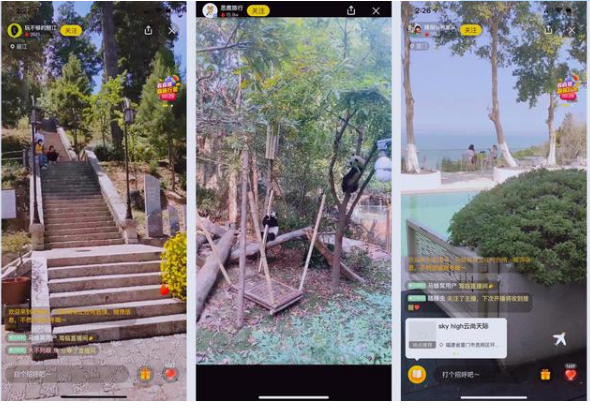 各直播平臺云旅游的截圖畫面。由記者截圖生成