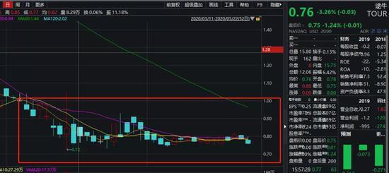 截至2020年5月24日,途牛股價(jià)為0.76美元,市值不到1億美元。