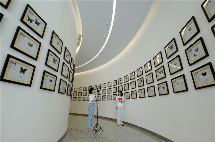5月17日,工作人員在河北省邯鄲北科自然博物館珍稀蝴蝶標(biāo)本展區(qū)直播。新華社發(fā)(郝群英 攝)