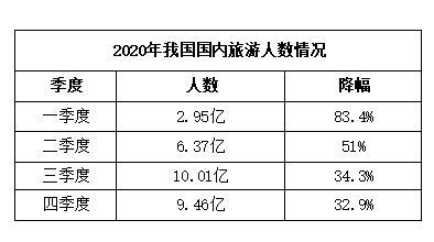 2020年,全國旅游市場受新冠肺炎疫情影響,國內(nèi)旅游人數(shù)減少。但隨著疫情防控常態(tài)化,按季度來看,降幅呈現(xiàn)收窄趨勢,國內(nèi)旅游市場有序復蘇。