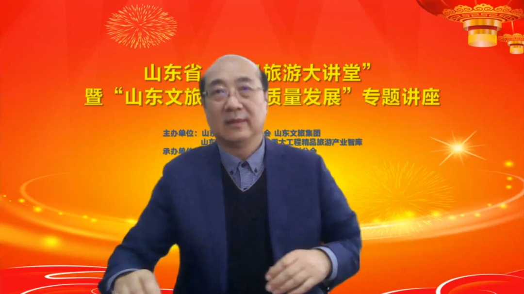 專題講座旨在貫徹落實(shí)黨的二十大精神,順應(yīng)新階段、迎接新挑戰(zhàn)、貼近新需求、注入新能量、謀求新發(fā)展,探討后疫情時(shí)代山東文旅產(chǎn)業(yè)高質(zhì)量發(fā)展的方向和路徑,把握政策動(dòng)向、分享研究成果、交流實(shí)踐經(jīng)驗(yàn)。講座采用線上線下結(jié)合的形式。中國(guó)旅游協(xié)會(huì)副會(huì)長(zhǎng)、山東省旅游行業(yè)協(xié)會(huì)會(huì)長(zhǎng)、山東大學(xué)旅游產(chǎn)業(yè)研究院院長(zhǎng)王德剛教授,山東旅游職業(yè)學(xué)院黨委書(shū)記陳國(guó)忠,山東省旅游行業(yè)協(xié)會(huì)副會(huì)長(zhǎng)兼秘書(shū)長(zhǎng)尚玉軒,省旅游設(shè)計(jì)院院長(zhǎng)孫曉靜,省旅游行業(yè)協(xié)會(huì)和旅游規(guī)劃分會(huì)秘書(shū)處、省旅游設(shè)計(jì)院全體員工現(xiàn)場(chǎng)參加會(huì)議。各市旅游協(xié)會(huì)(聯(lián)合會(huì))、各分會(huì)組織會(huì)員單位通過(guò)線上視頻會(huì)議形式收聽(tīng)收看講座。尚玉軒主持會(huì)議。