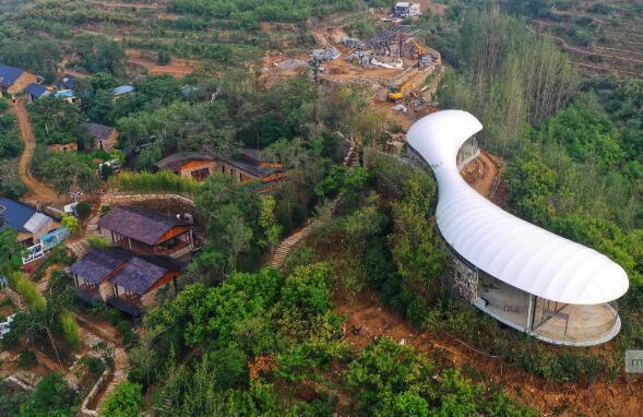 這里的民宿特色建筑,呈白云形狀,每一個院落都以“云”字立意,讓這片“故鄉(xiāng)的云”恰如其名。這個坐落在東西門村的民宿項目,改造傳統(tǒng)村落,巧妙利用自然景觀,目前規(guī)劃有圖書館、海水泡池、健身中心、親子游藝區(qū)等功能區(qū),建成之后將成為集民俗體驗、科普教育、鄉(xiāng)村休閑和親子娛樂為一體的旅游度假區(qū),也將成為泰安市岱岳區(qū)鄉(xiāng)村旅游的新地標。